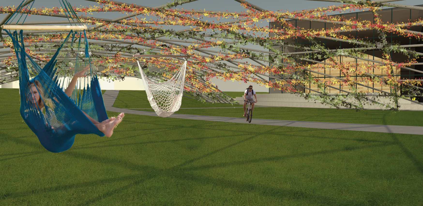 Since Rotterdam has the top 5 biggest skyscrapers of the Netherlands, it now has the biggest pergola of the country.